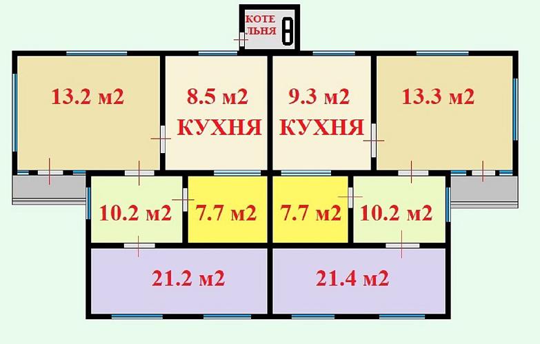 Будинок загальною площею 130 м 2 на 2 входи розташований на земельній ділянці під забудову за кадастровим номером: 3221455800:01:012:0069.